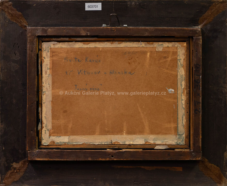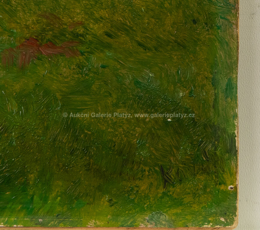 olej/karton, rozměr 25 x 35 cm, značeno vpravo dole, zaskleno, rámováno, oděrky na rámu, přiložen původní posudek vypracovaný Dr. Evou Bukolskou, CSc. v roce 1982, varianta obrazu publikovaného v autorově monografii pod č. 591, str. 455