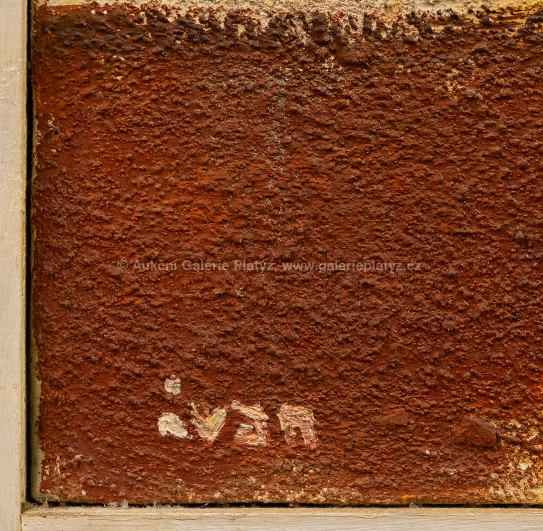 strukturovaná malba, olej/písek/plátno, rozměr 85 x 75 cm, značeno vlevo dole, olištováno