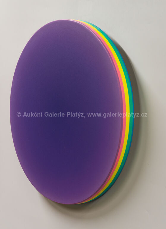 akryl/plátno, průměr 50 cm, značeno, datováno a popsáno na zadní straně
