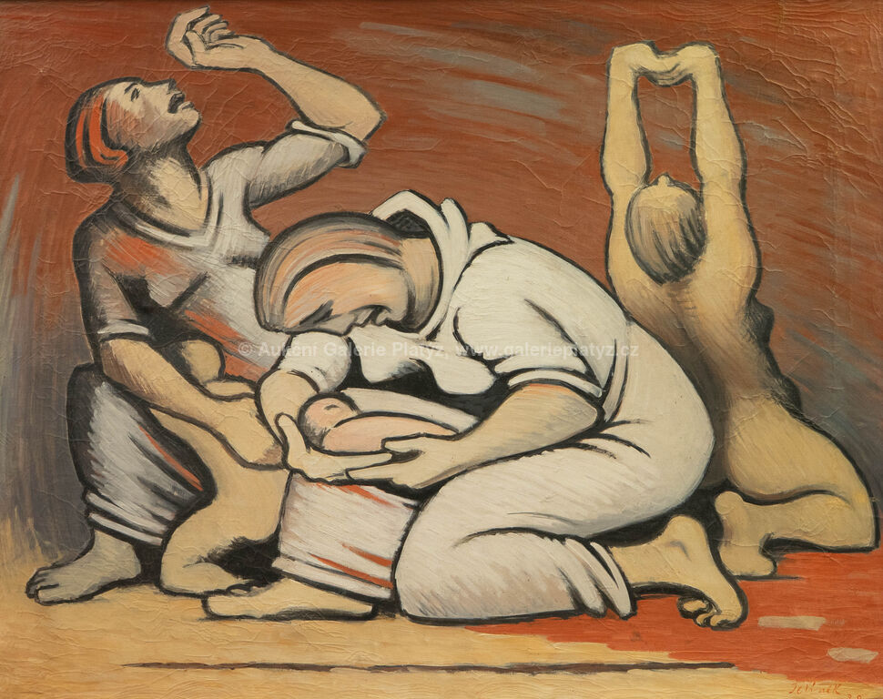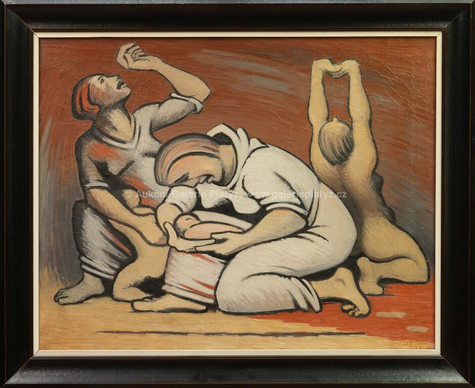 olej/plátno, rozměr 80 x 100 cm, značeno a datováno vpravo dole, rámováno, krakelovaná malba