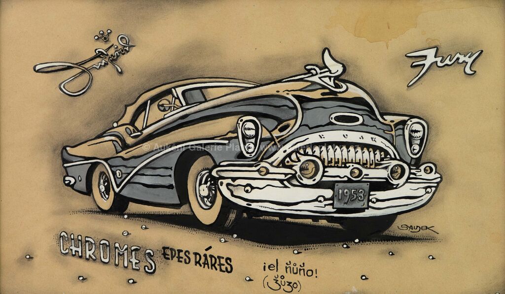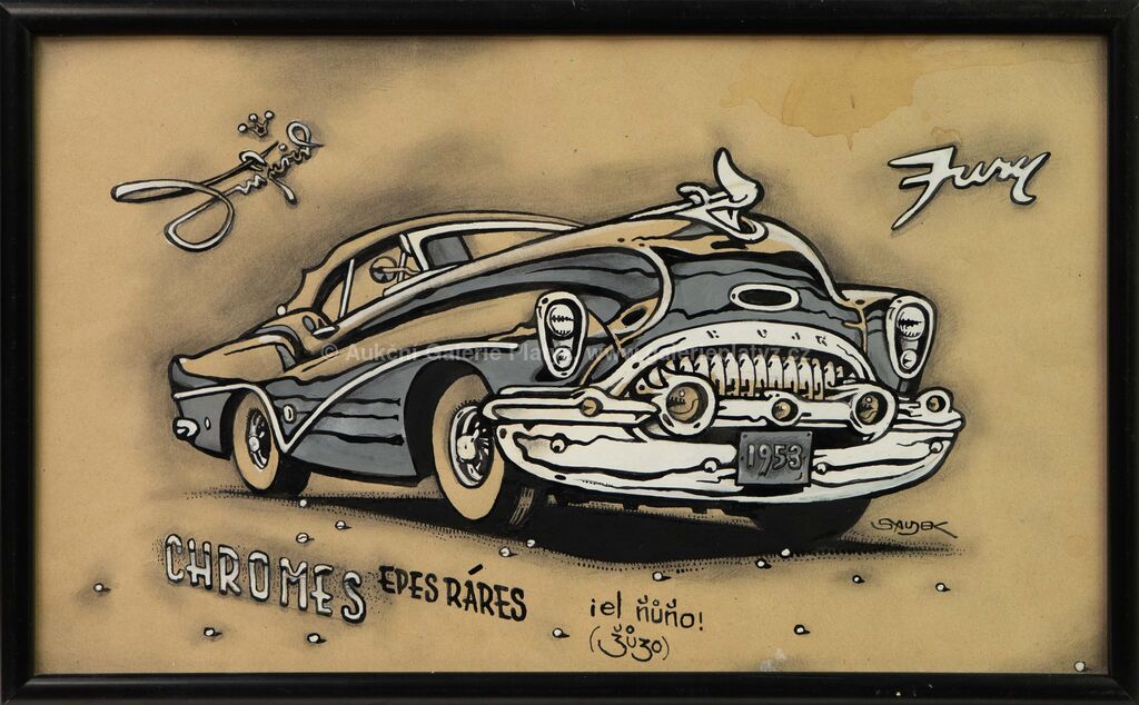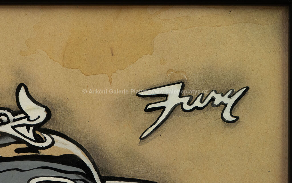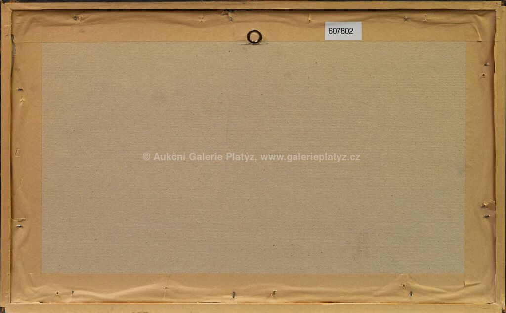 kombinovaná technika, akvarel/tuš/běloba/papír, rozměr 29,5 x 49 cm, značeno na pravé straně, zaskleno, rámováno, vpravo nahoře skvrna od vlhkosti (viz foto)