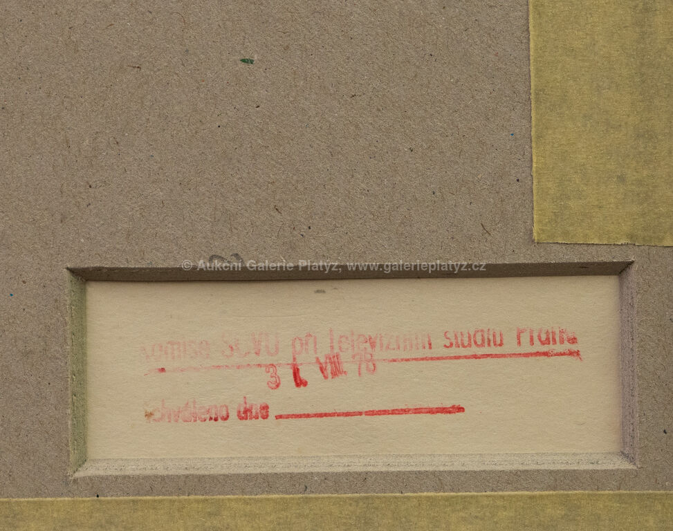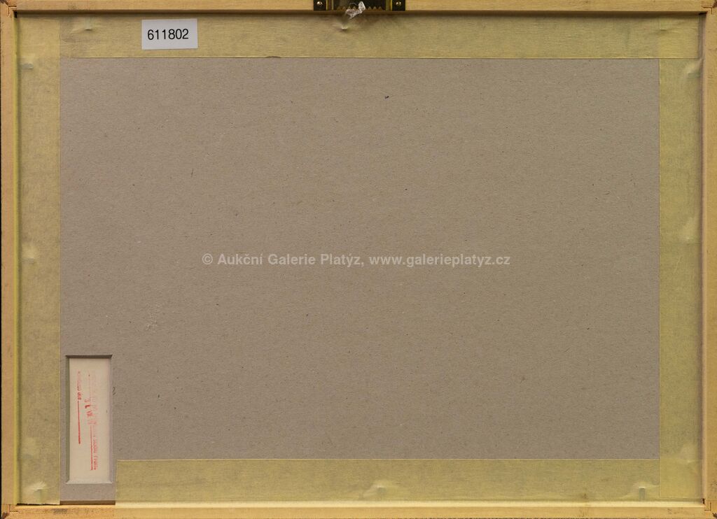 kombinovaná technika, tuš/akvarel/papír, rozměr 30 x 42 cm, neznačeno, na zadní straně evidenční razítko, zaskleno, rámováno