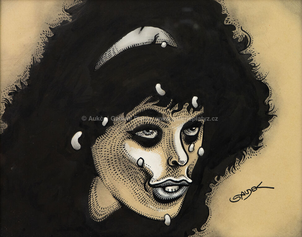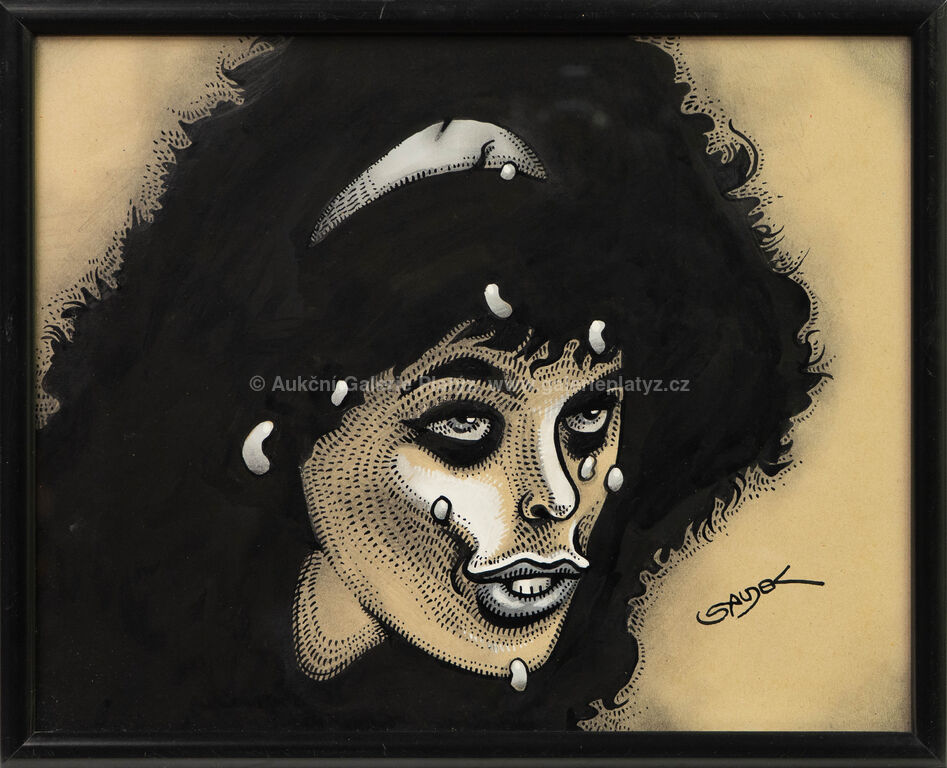 kombinovaná technika, akvarel/tuš/běloba/papír, rozměr 30 x 37 cm, značeno vpravo dole, zaskleno, rámováno