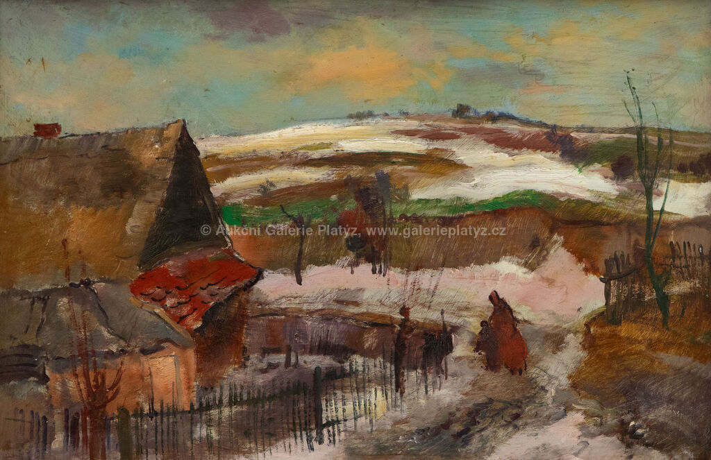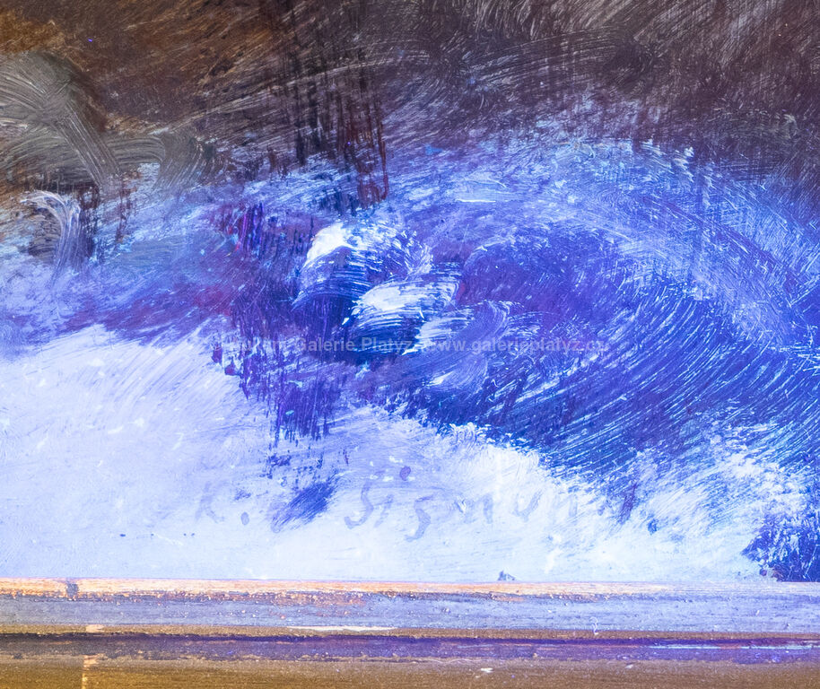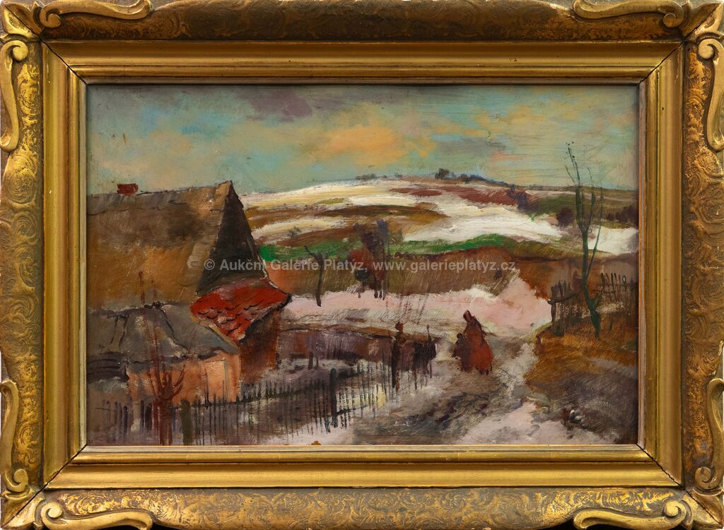 olej/karton, rozměr 32 x 48 cm, značeno vpravo dole, zaskleno, rámováno, oděrky na rámu