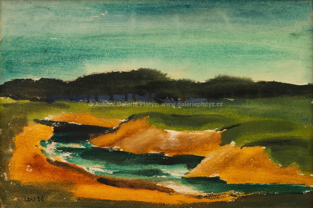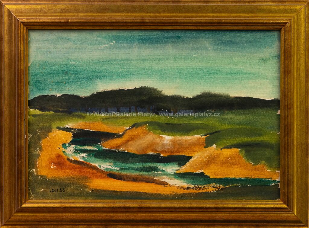 akvarel/papír, rozměr 30 x 44 cm, značeno a datováno vlevo dole, zaskleno, rámováno