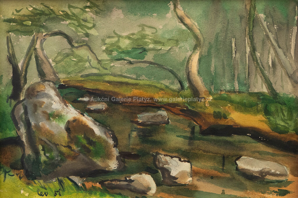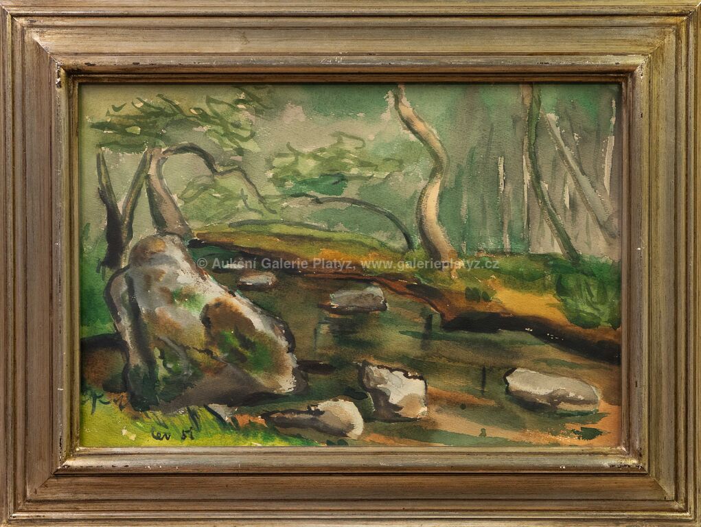 akvarel/papír, rozměr 30 x 44 cm, značeno a datováno vlevo dole, zaskleno, rámováno, oděrky na rámu