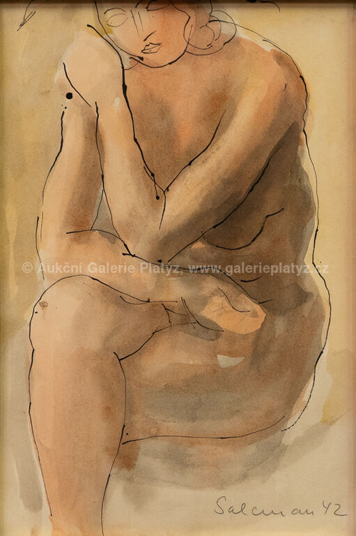 akvarel/tuš/papír, rozměr 29 x 20 cm, značeno a datováno vpravo dole, zaskleno, rámováno