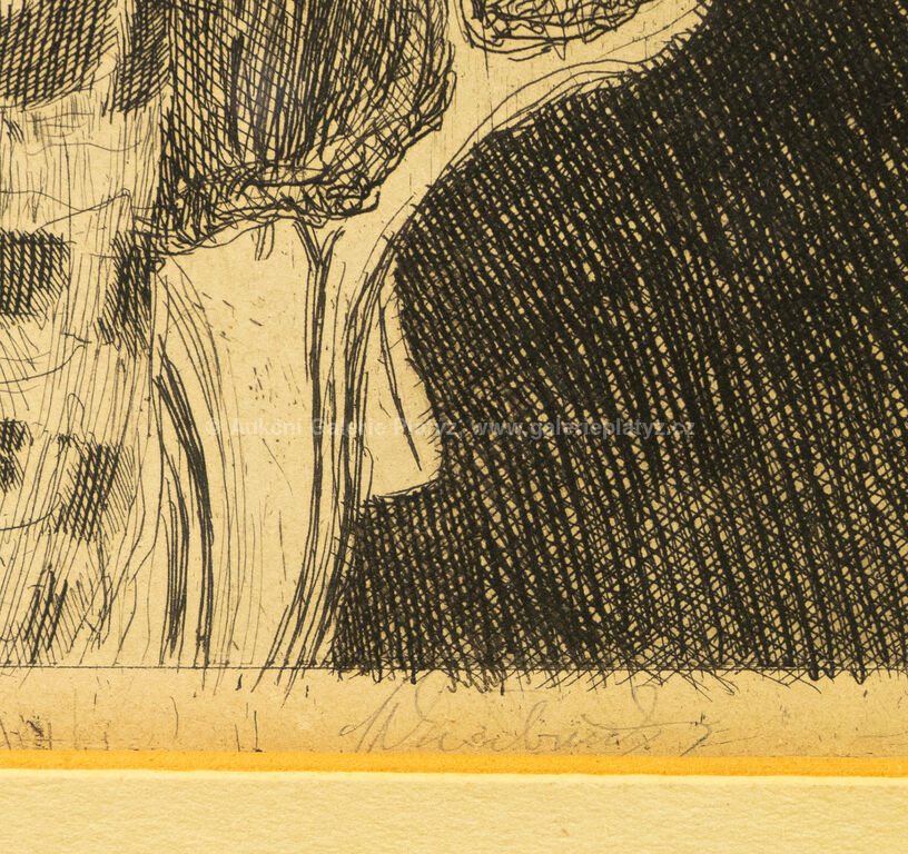 lept/papír, rozměr ve výřezu 38 x 32 cm, značeno ve spodní části, paspartováno, zaskleno, rámováno, oděrky na rámu