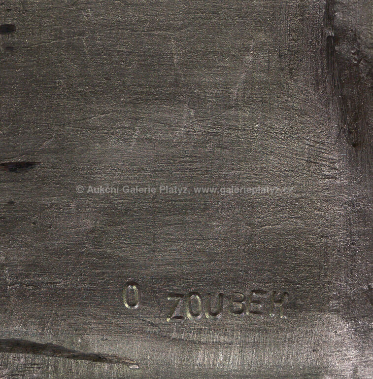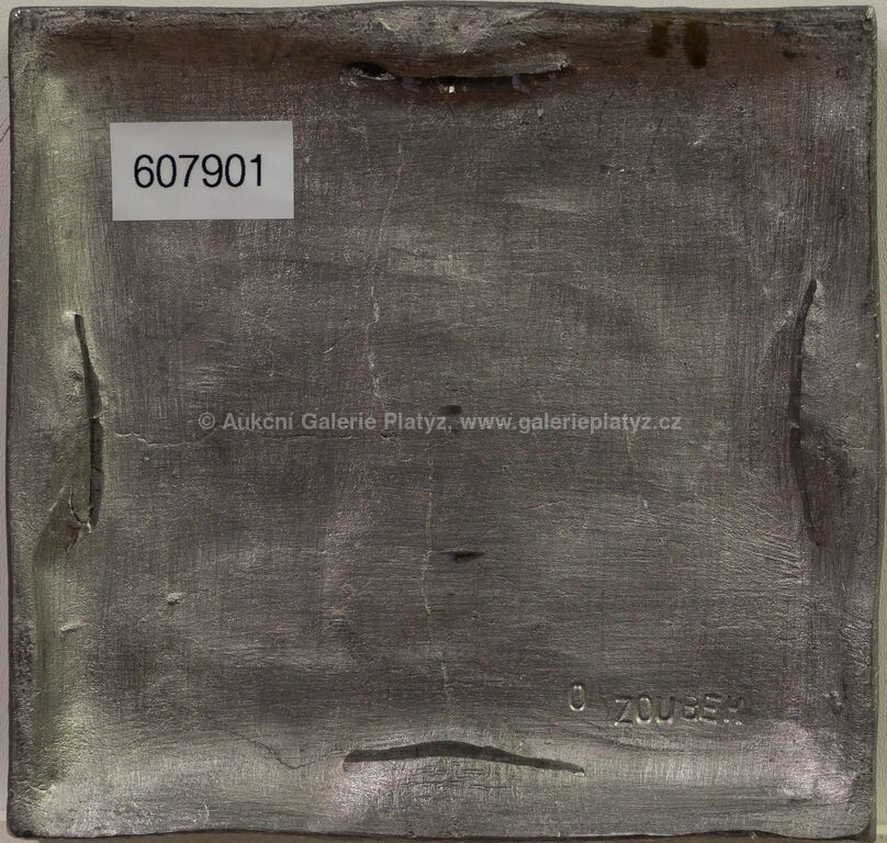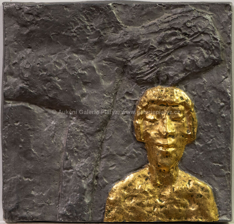reliéf, olovo/cín/zlato, rozměr cca 15 x 16 cm, značeno na zadní straně, konzultováno a pravost potvrzena Nadačním fondem Kmentová Zoubek