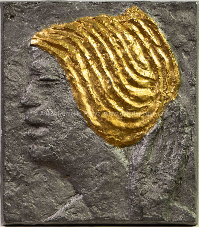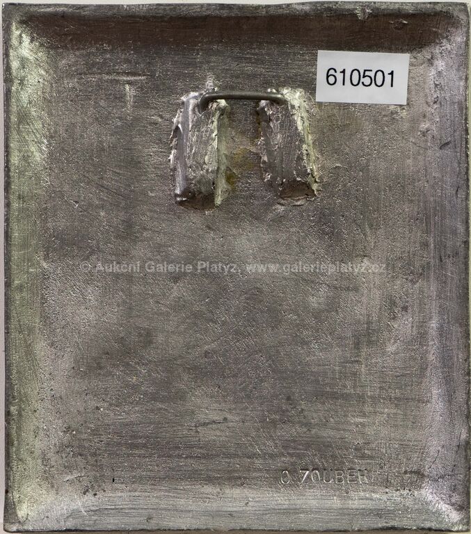 reliéf, olovo/cín/zlato, rozměr 18,5 x 16 cm, značeno na zadní straně, konzultováno a pravost potvrzena Nadačním fondem Kmentová Zoubek