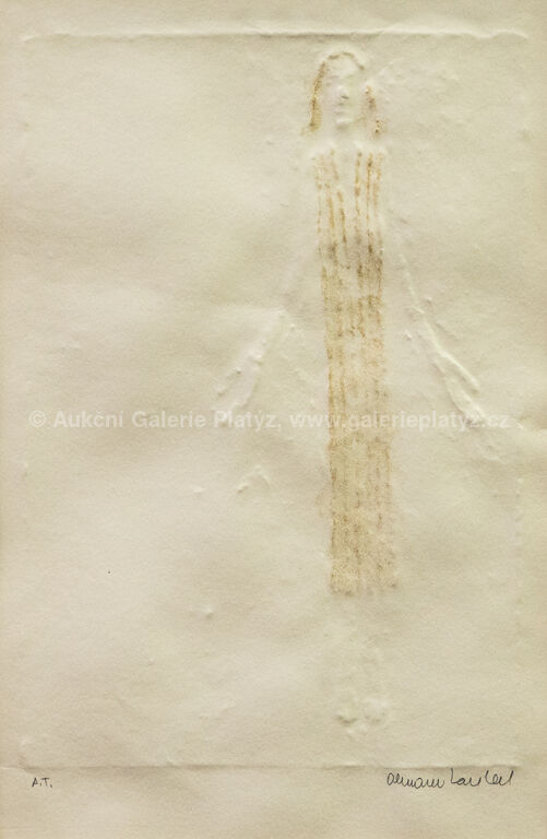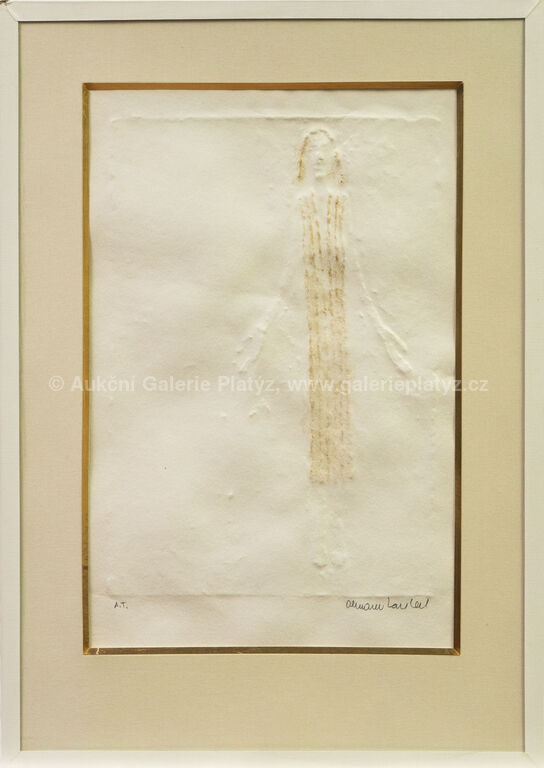 papírový reliéf/ruční papír/zlato, rozměr ve výřezu 35 x 23 cm, značeno a popsáno ve spodní části, paspartováno, zaskleno, konzultováno a pravost potvrzena Nadačním fondem Kmentová Zoubek