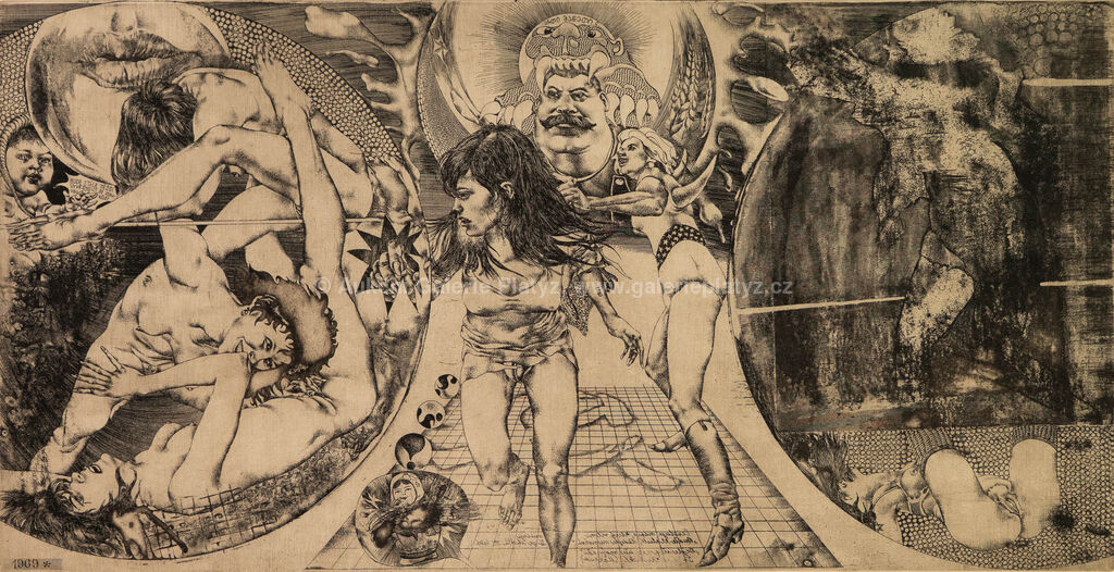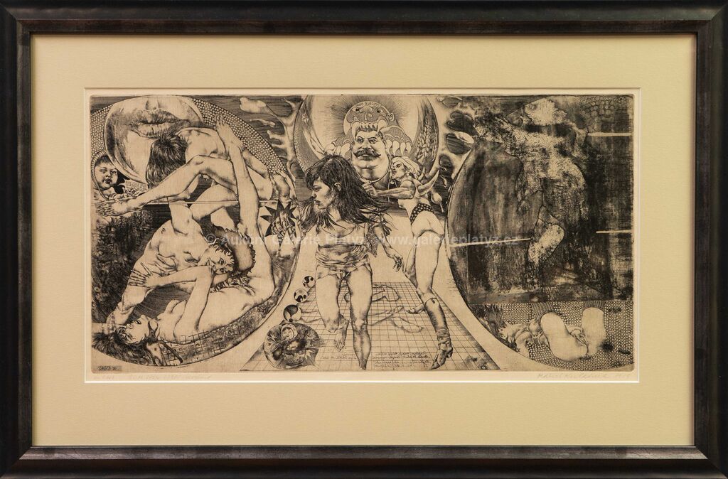 lept/papír, rozměr ve výřezu 26,5 x 50,5 cm, značeno, datováno a popsáno ve spodní části, autorský tisk, paspartováno, zaskleno, rámováno