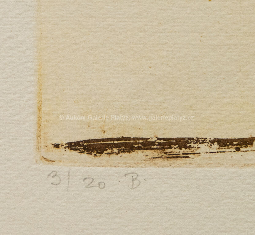 lept/papír, rozměr ve výřezu 32 x 38 cm, značeno a číslováno ve spodní části, paspartováno, zaskleno, rámováno