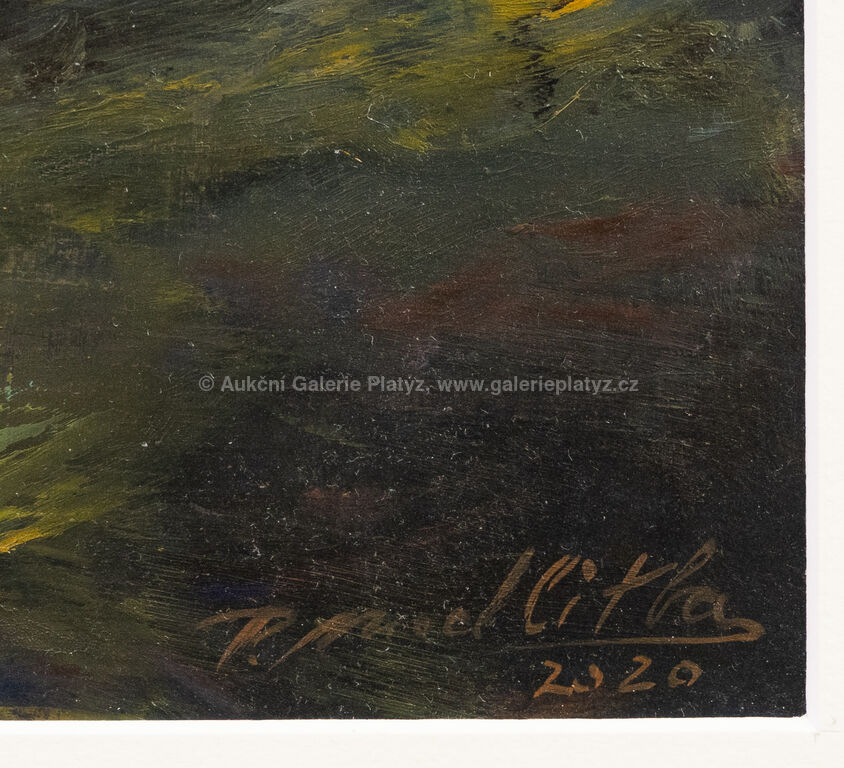 olej/karton, rozměr ve výřezu 31 x 46,5 cm, značeno a datováno vpravo dole, paspartováno, zaskleno muzeálním sklem, rámováno