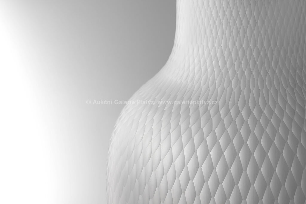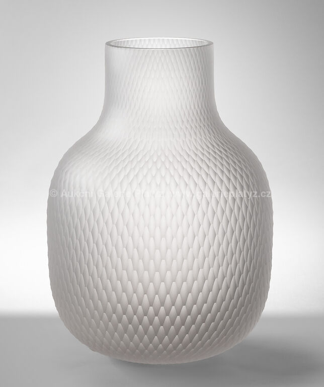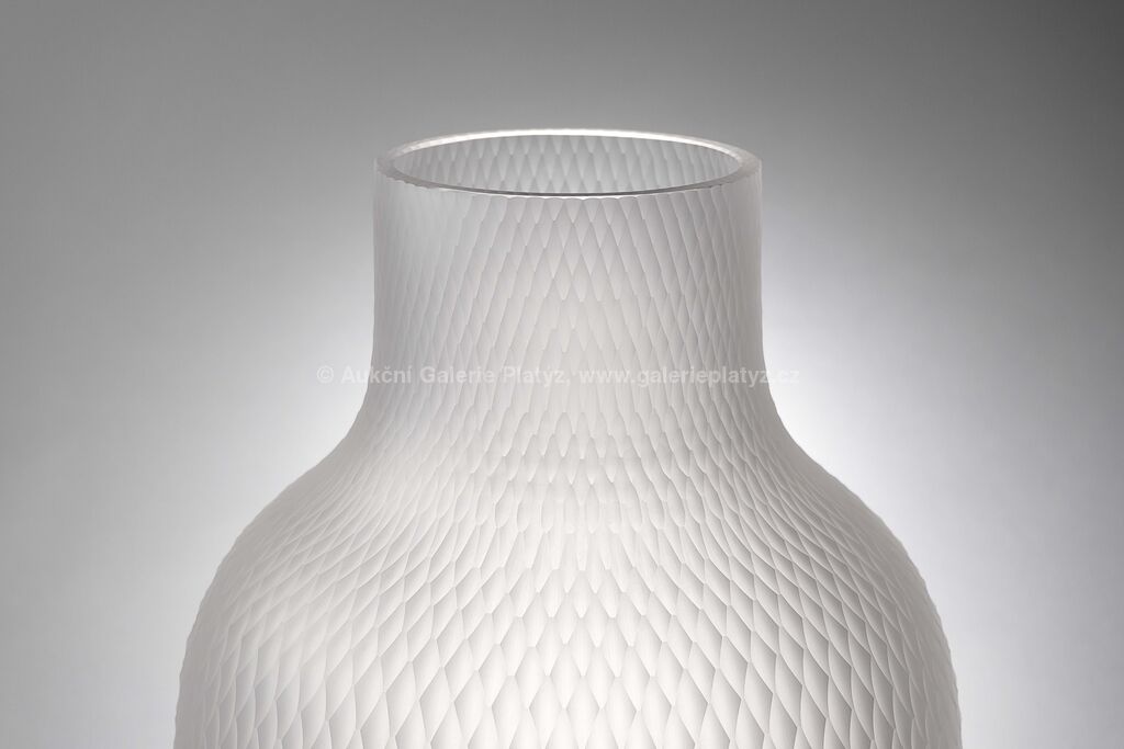 ručně broušená křišťálová váza, bezolovnatý křišťál, rozměr: výška 40 cm, průměr nejširší části 28 cm, průměr hrdla 13,5 cm, značka sklárny Rückl na spodní straně, tento design vázy ze série Metamorphosis vznikl pouze v jednom exempláři, nebyl určen k další výrobě