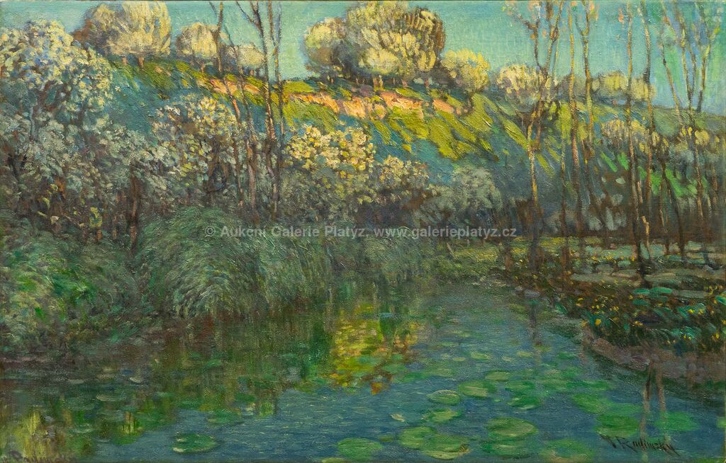 olej/plátno, rozměr 64 x 99 cm, značeno vpravo dole, rámováno, varianta díla Rozkvetlá stráň publikovaná v autorově monografii pod č. 347, na str. 266