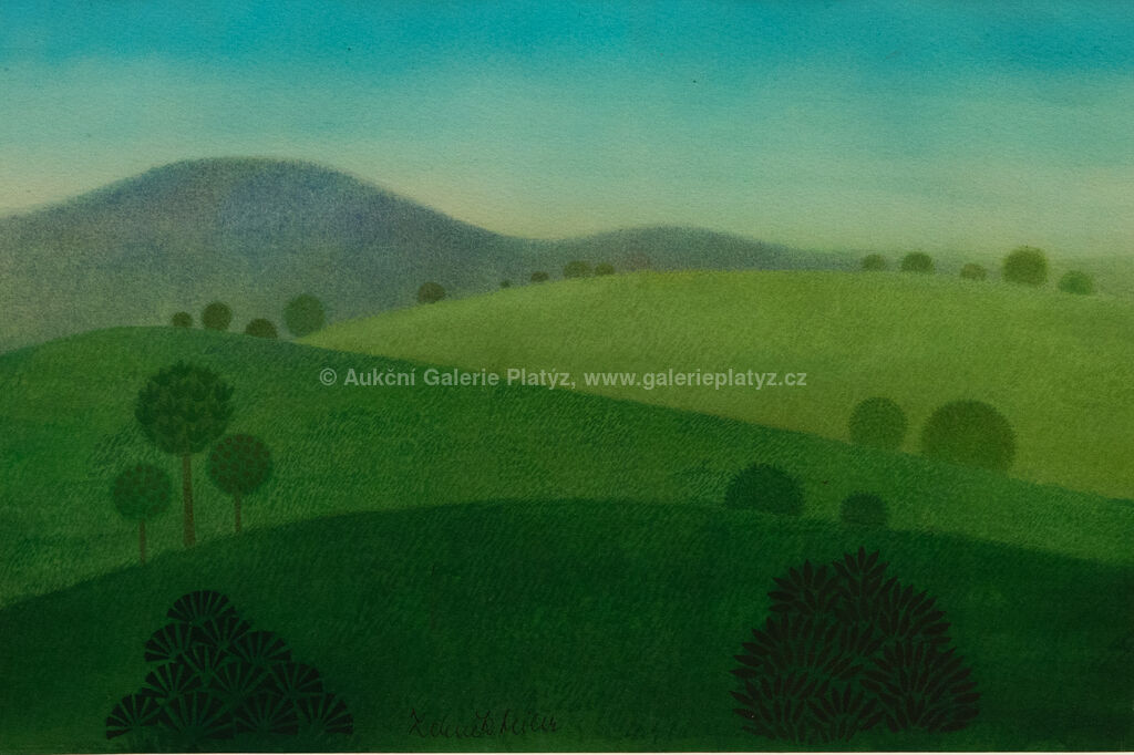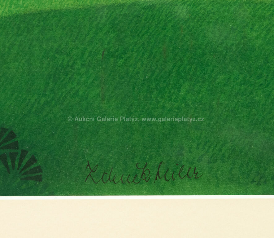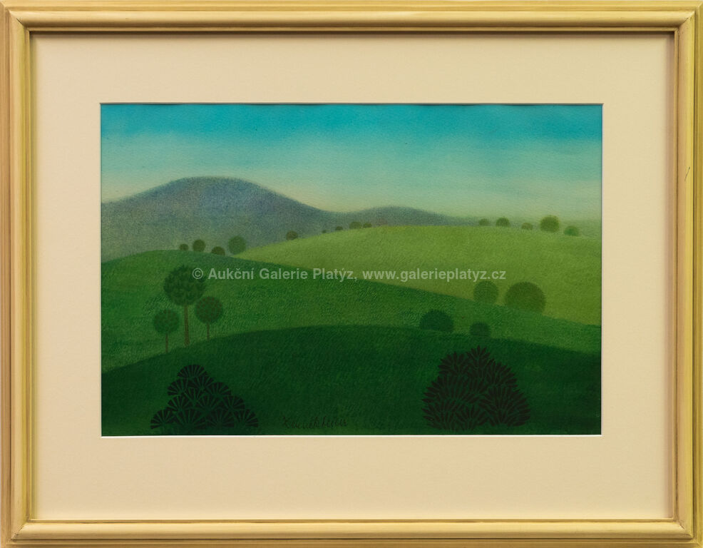 kvaš/papír, rozměr ve výřezu 26 x 39 cm, značeno ve spodní části, paspartováno, zaskleno, rámováno